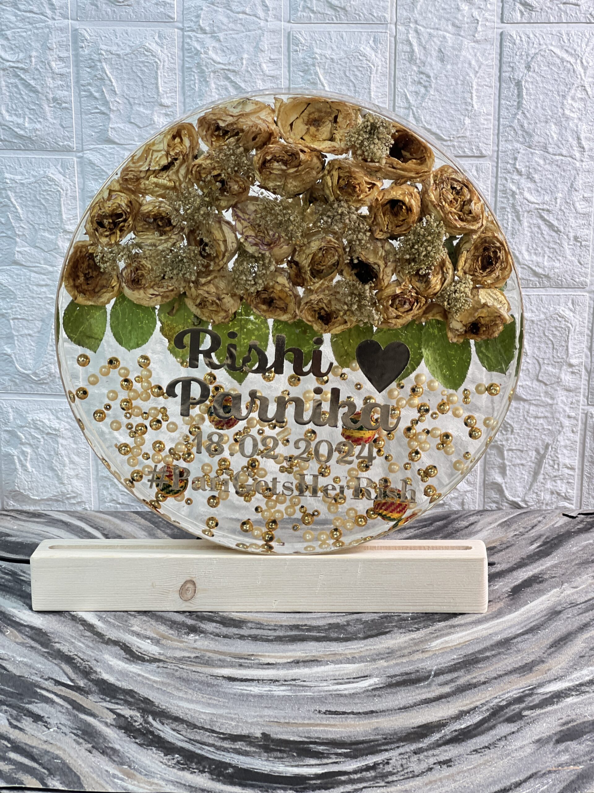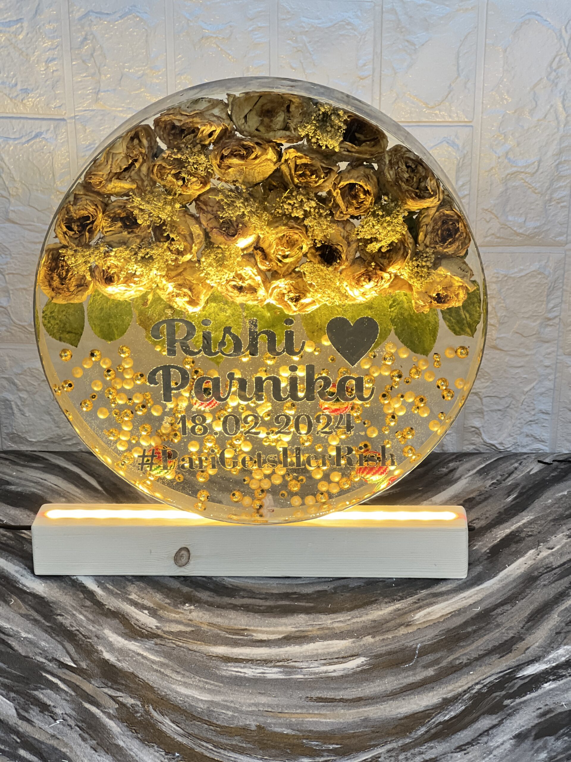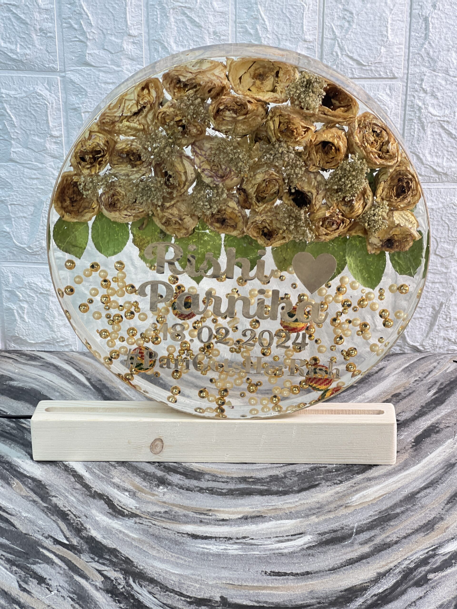 • Product Name: Epoxy Resin Preservation Frame with Wedding Garland | (12- Inch ) Varmala LED Lamp