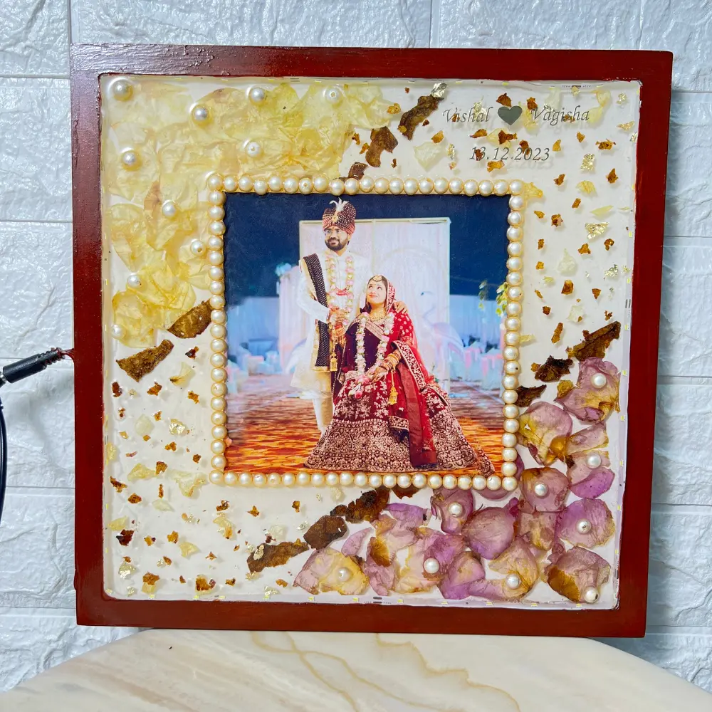 • Personalized Couple Photo: Include a photo of the couple at the heart of the frame, symbolizing love and unity.