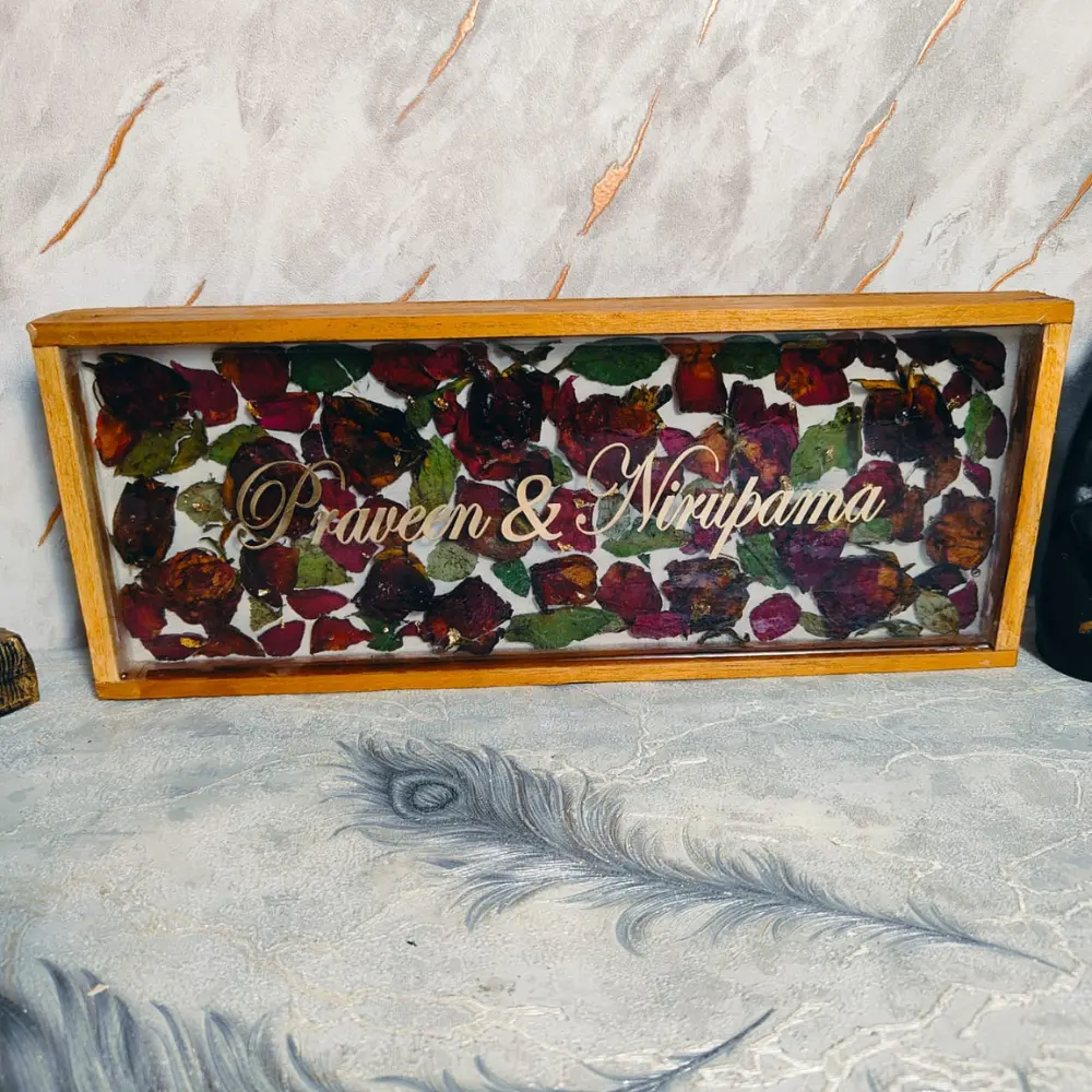 • Product Name: Personalized Couple Nameplate with Wedding Varmala Flowers (15×5 Inch)