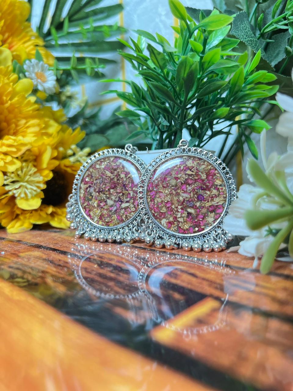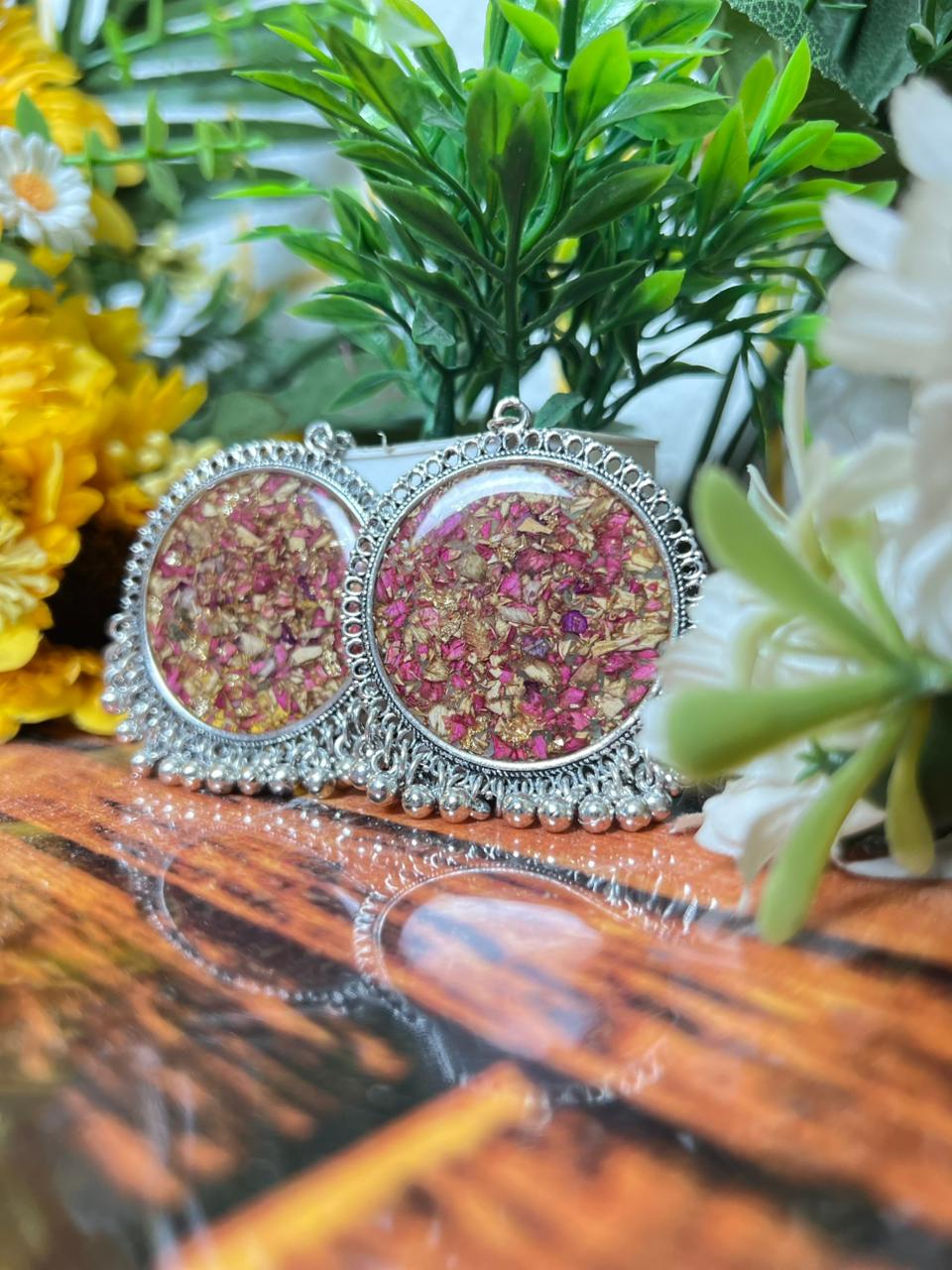 This Rose Preserved Resin Jewelry Set is made for people who love soft and cute gifts. The earrings are filled with real rose petals and gold flakes that give a warm and classy look. The pearl drops add a simple and lovely touch that suits every outfit. The matching heart keychain carries the same rose style, so the whole set feels complete and beautiful.