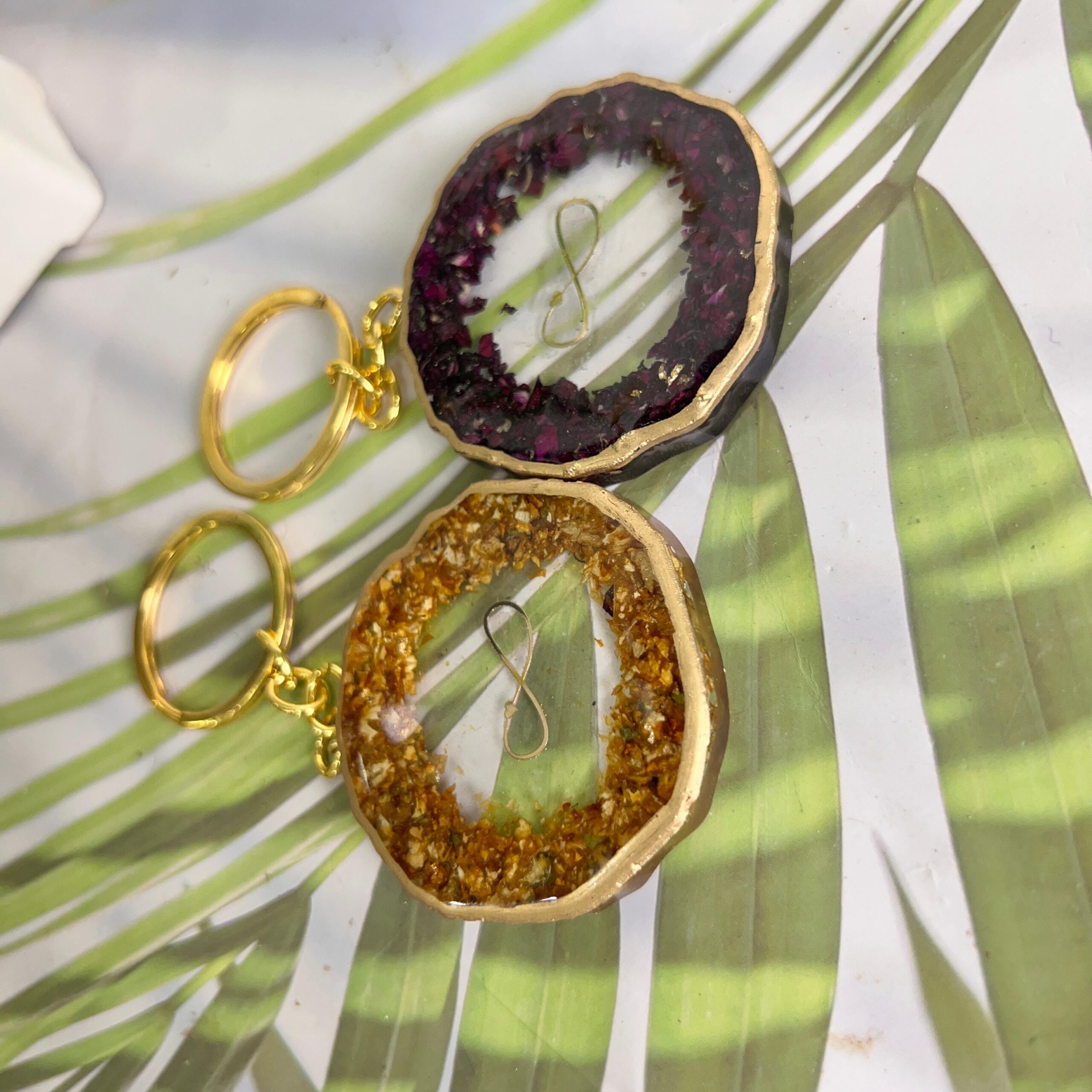 This handmade resin keychain is a beautiful memory made using real varmala flowers from your special day. It comes in a clear round shape with dried flowers beautifully sealed inside. Each piece is fully handcrafted and made with love, giving you a unique way to preserve your wedding moments forever.